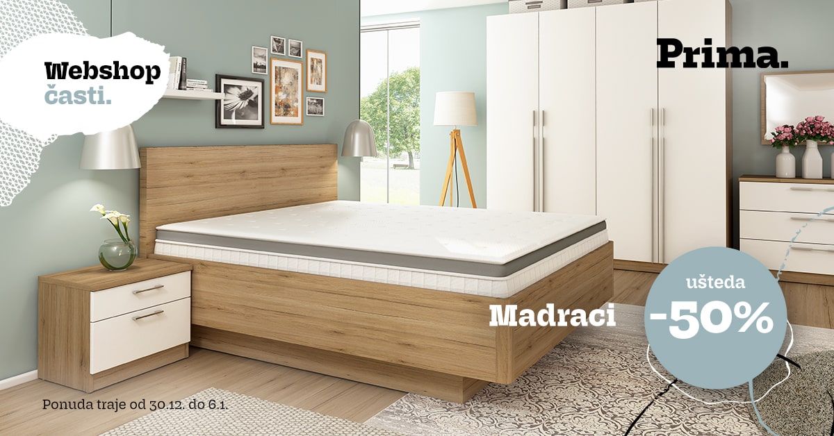Prima webshop časti cijelu Hrvatsku! Opremite svoju spavaću sobu namještajem i dekoracijama uz super uštede od 30. prosinca do 6. siječnja, u Prima salonima i na webshopu!