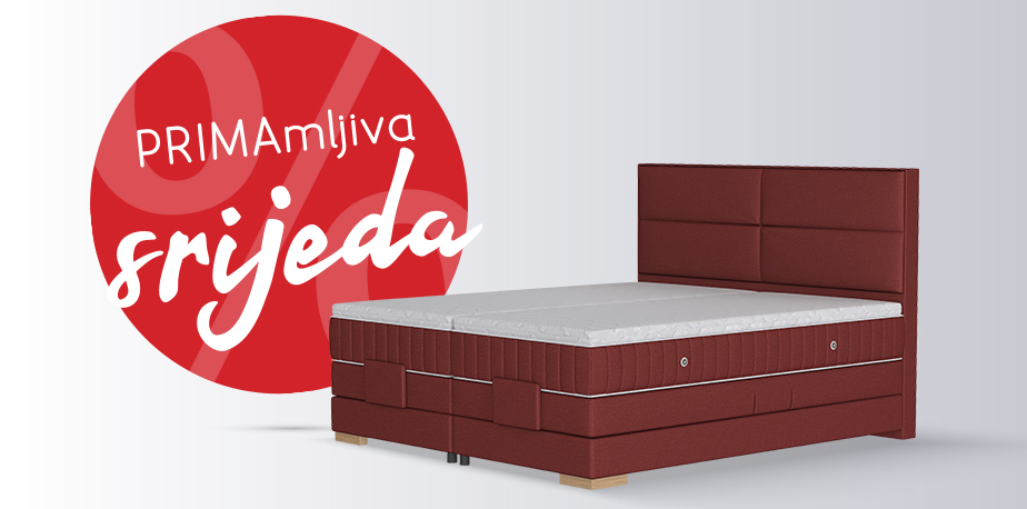 - -40% na sve krevete i madrace (tapecirani i drveni kreveti, box spring, francuski kreveti, podnice, madraci, nadmadraci, štep deke, popluni, jastuci)