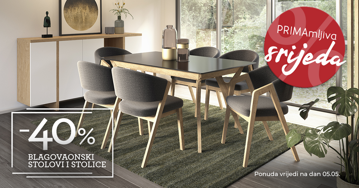 PRIMAmljiva srijeda uz 40% uštede na blagovaonske stolove, stolice, modularne i blok kuhinje