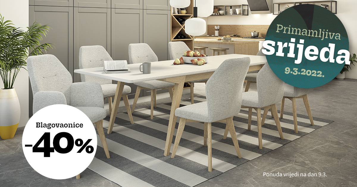 Primamljiva srijeda uz 40% uštede na tapecirane garniture i blagovaonice!