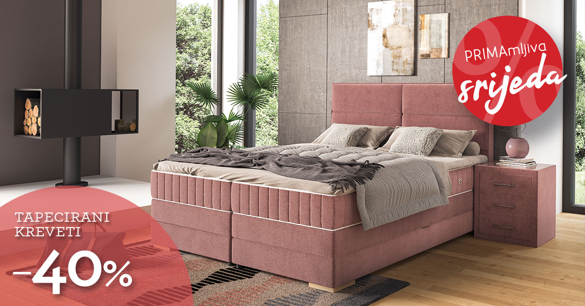 - 40% uštede na sve tapecirane krevete (tapecirani, francuski i box kreveti)