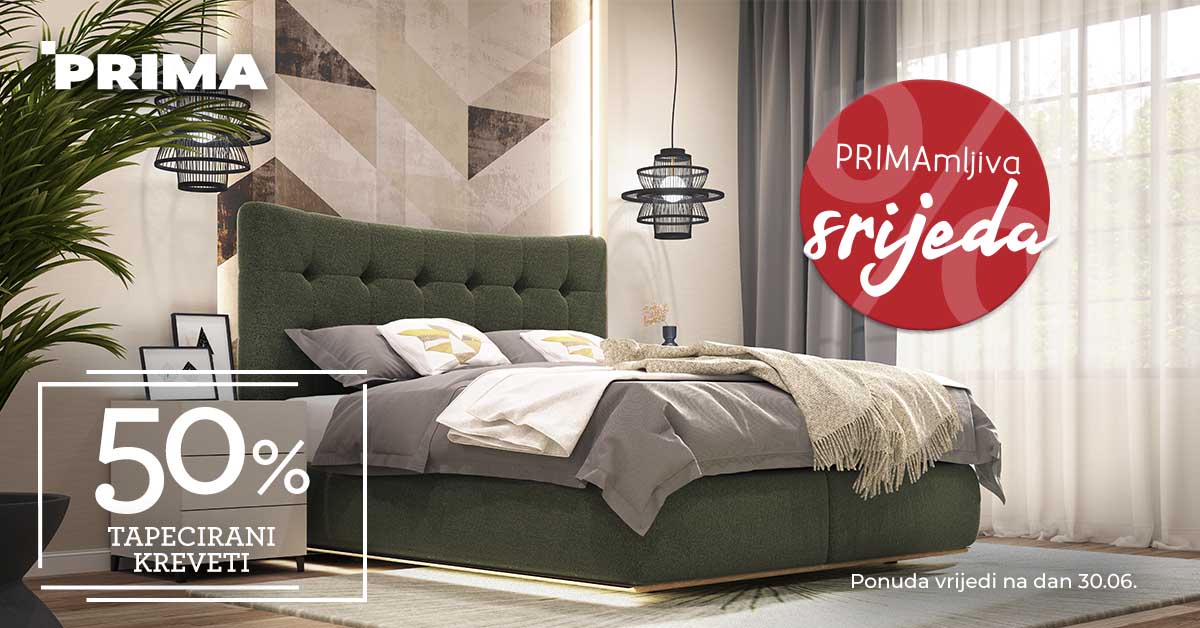 PRIMAmljiva srijeda uz 50% uštede na tapecirane krevete i madrace