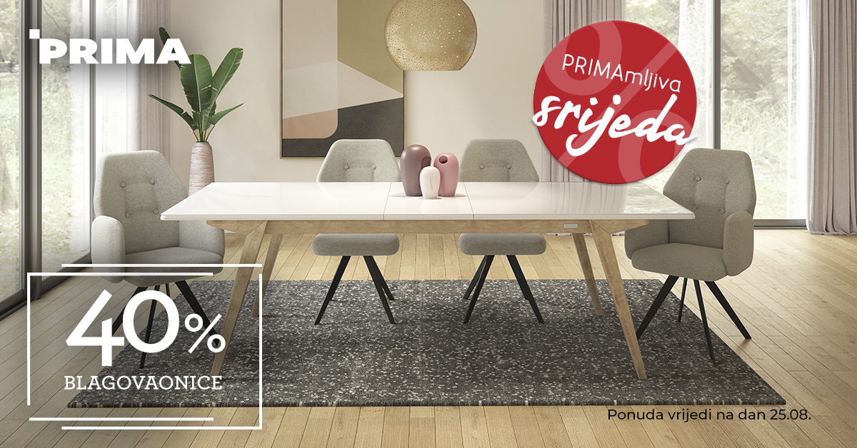 Ove srijede iskoristite 40% uštede na blagovaonice, modularne i blok kuhinje u PRIMA salonima i u webshopu.