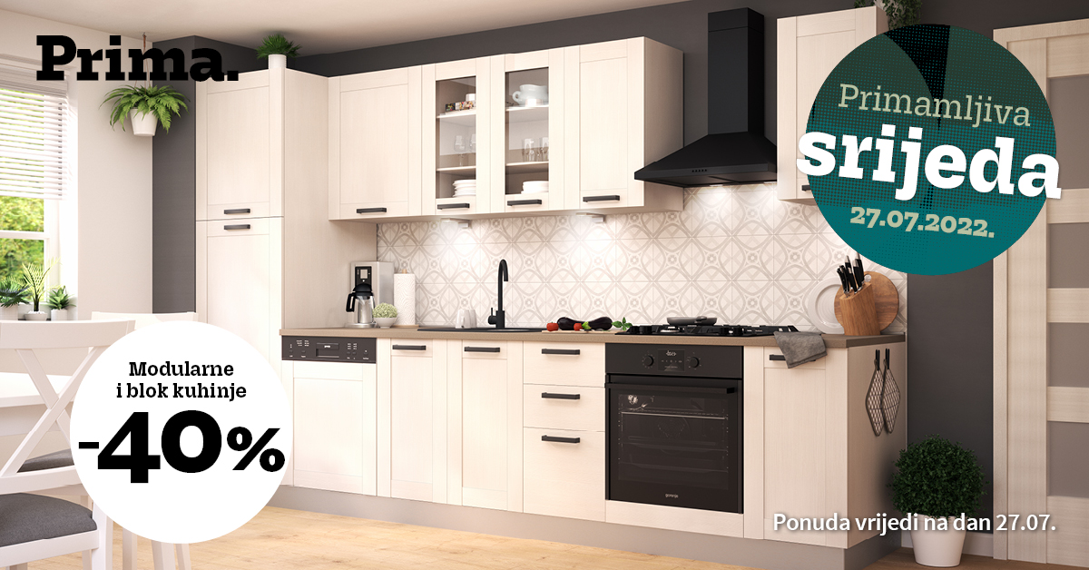 *Ušteda vrijedi na dan 27.7. u Prima salonima i na webshopu. Akcije se ne zbrajaju, međusobno se isključuju i ne vrijede za proizvode iz COCO maison asortimana i artikle označene oznakom HIT (osim blok kuhinja!).
