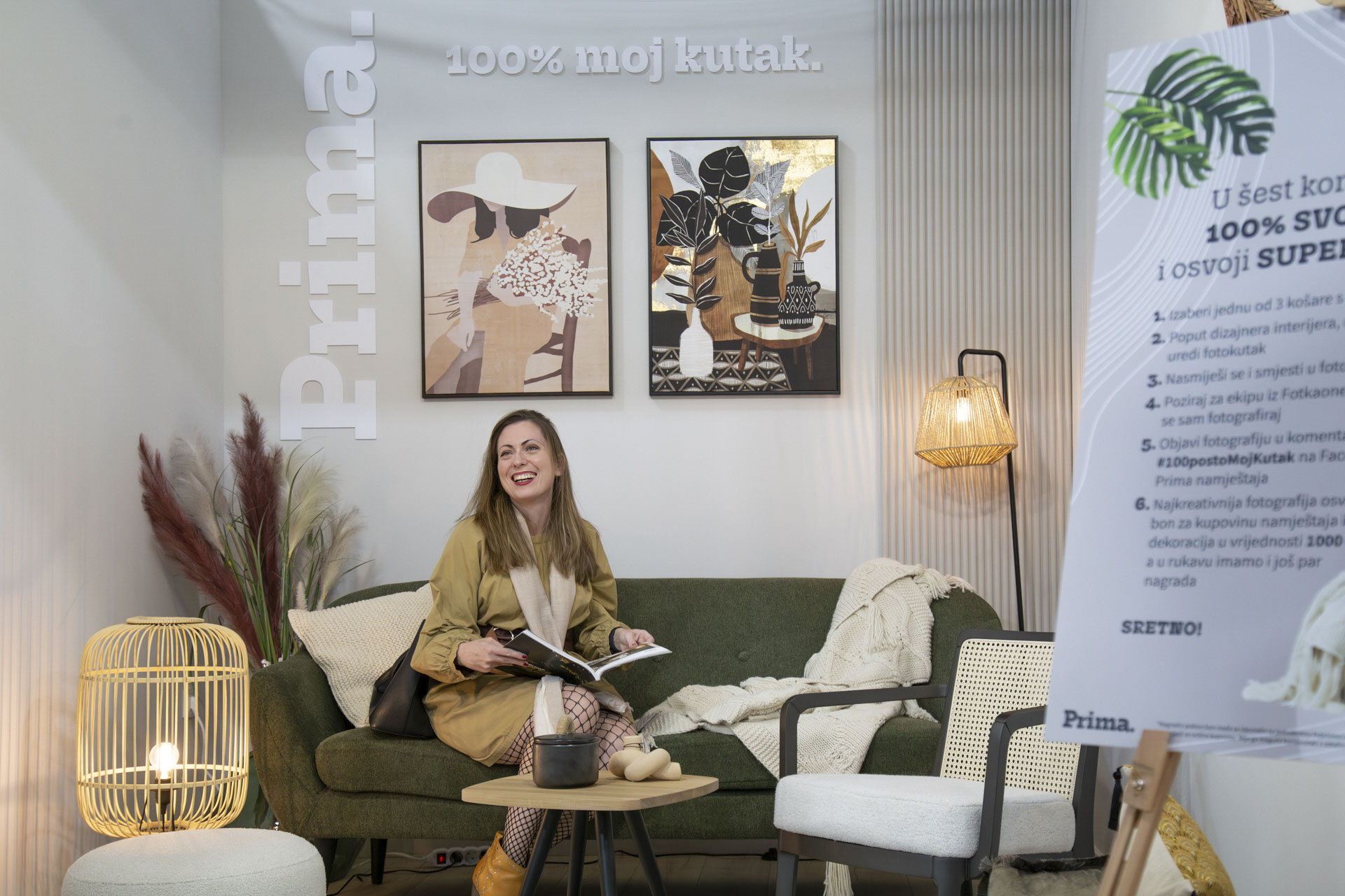 Posebno zabavan dio izložbenog prostora Prima grupe bio je poseban 100% tvoj fotokutak uređen u boho stilu. Posjetitelji su bili spremni zasukati rukave i pokazati svoje vještine uređenja interijera dekoracijama te pozirajući za prijatelje koji su ih fotografirali mobitelom ili za Fotkaonu s posebnim aparatom. Upravo su to neki od prvih koraka na putu do super nagrade – poklon bona za kupovinu namještaja ili dekoracija u vrijednosti od čak 1000 € koji osvaja najkreativnija fotografija. Oni koji su se posebno potrudili pa završe među favoritima također imaju priliku osvojiti poklon bonove u iznosu od 500 € i 100 €.