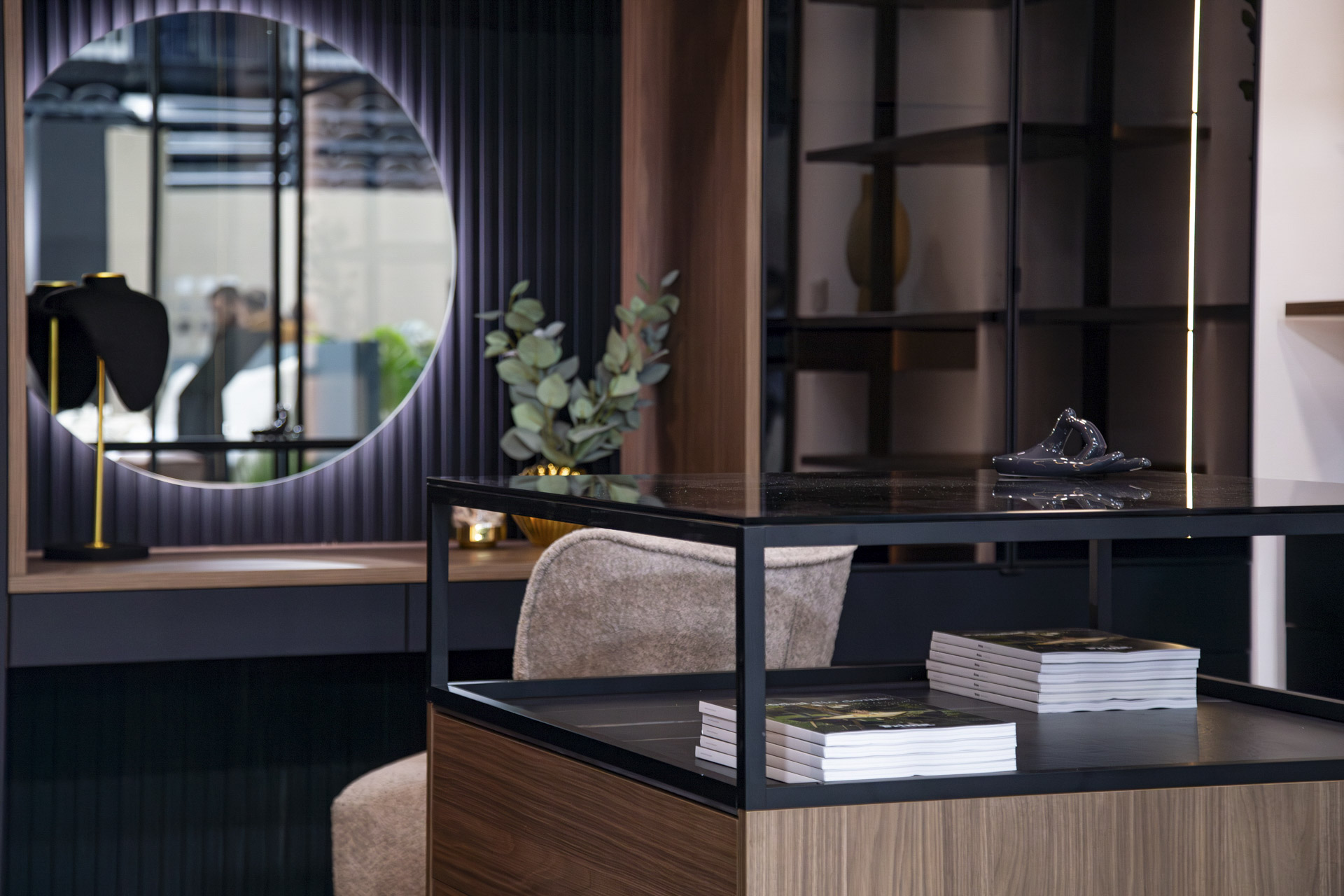 - Drugi dio našeg izložbenog prostora bio je uređen u sofisticiranoj, luksuznoj verziji minimalizma. Osim atraktivnog kreveta Polina, moderne kuhinje po mjeri Stela i dnevnog boravka s modularnom garniturom Downtown te regalom Riva, u sklopu ovog interijera po prvi put smo javnosti predstavili Prima walk-in ormar kao novitet u našoj ponudi. Bit će dostupne tri izvedbe, a na InDizajnu smo ih sve odlučili pokazati u jednom sastavu, s otvorenim elementima od iverala i bogatom opremom, zatvorenim dijelom s frontama te ostakljenim elementima koji uključuju i toaletni stol, kao i moderne modularne metalne nosače od kojih se mogu stvarati ne samo garderobni sustavi, već i pregrade u prostoru, moderni regali i predsoblja – istaknula je Mia Zadro.