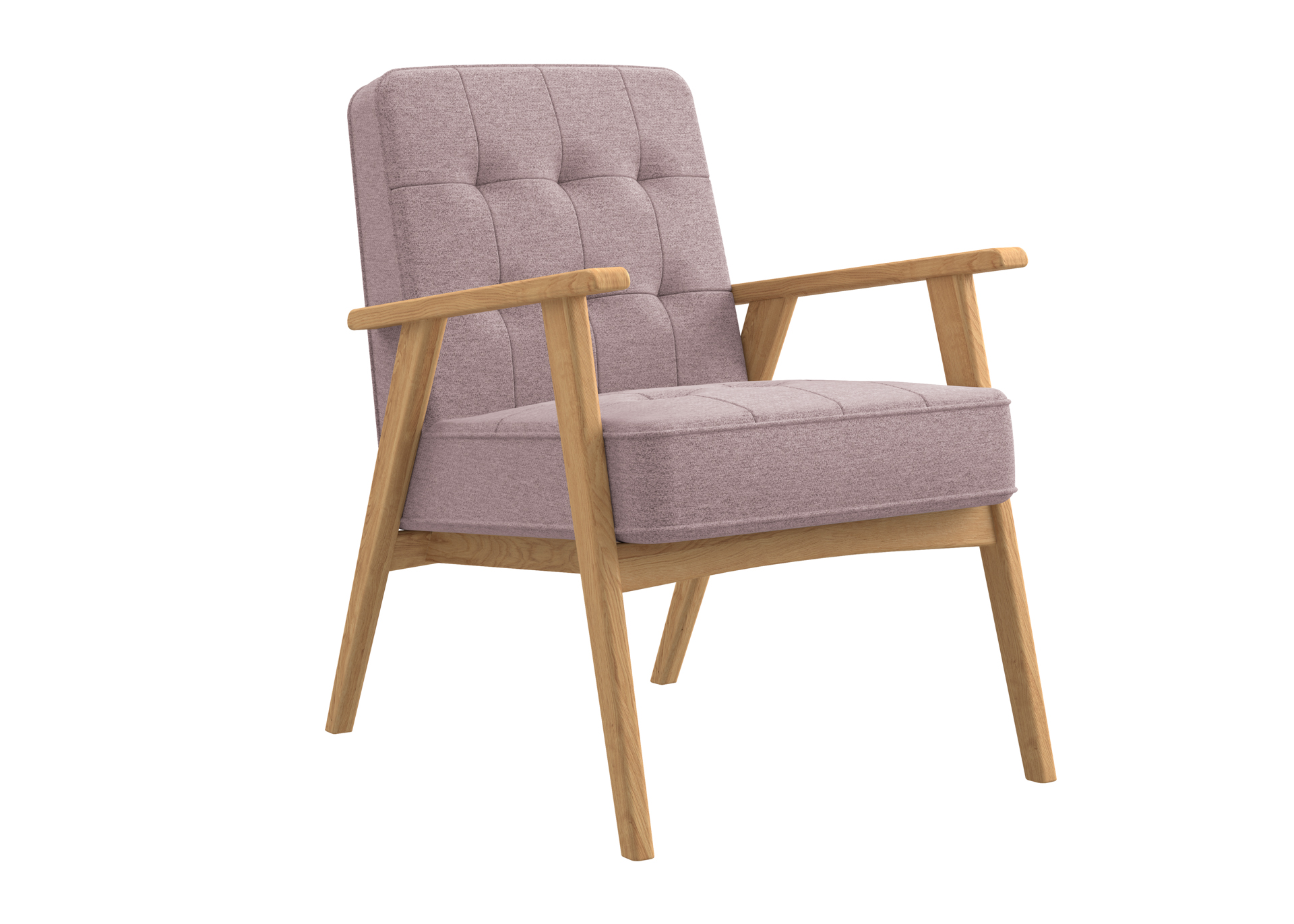 Fotelja Atlanta u kombinaciji izbijeljenog hrasta i roza tkanine Mercury 4025