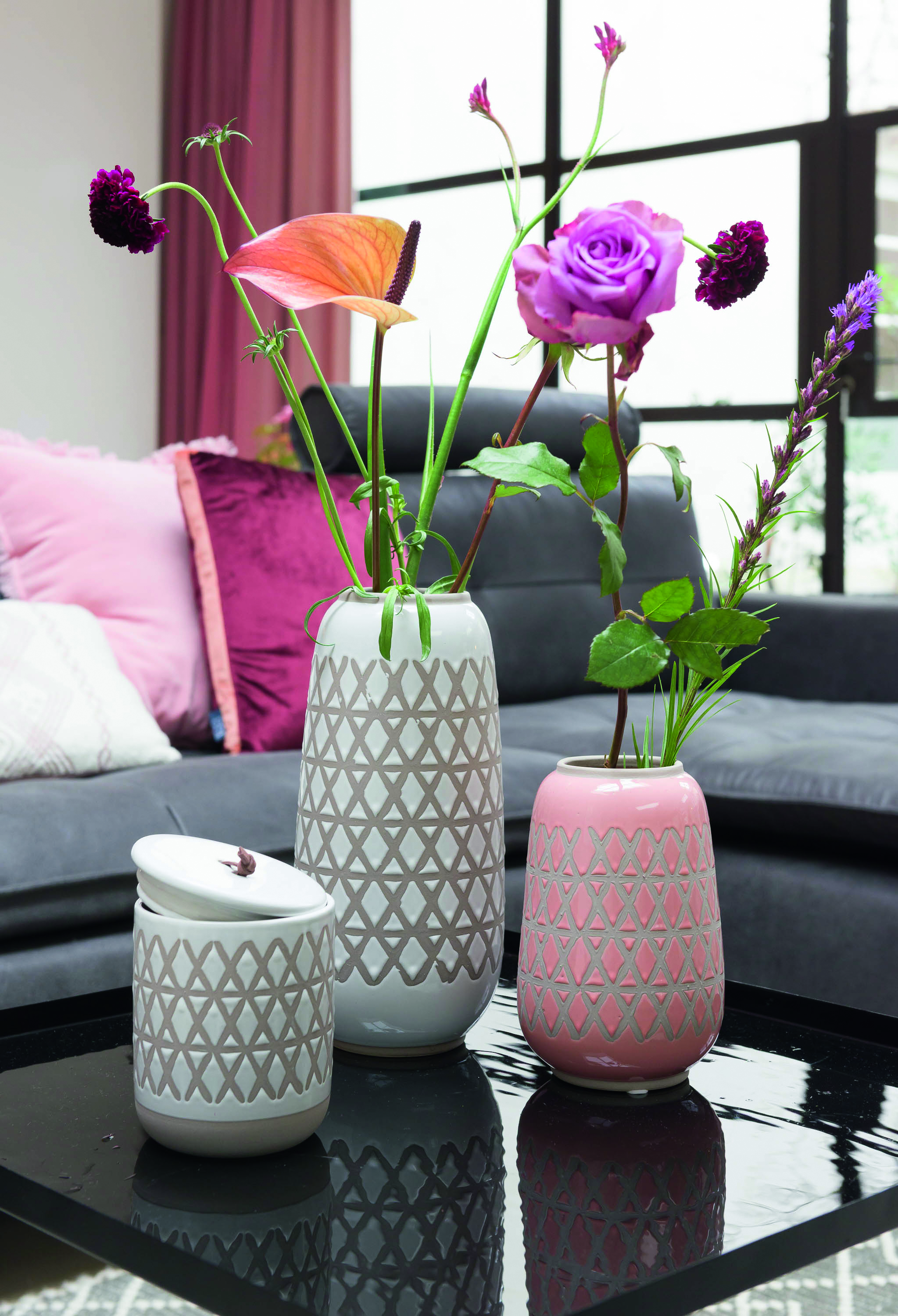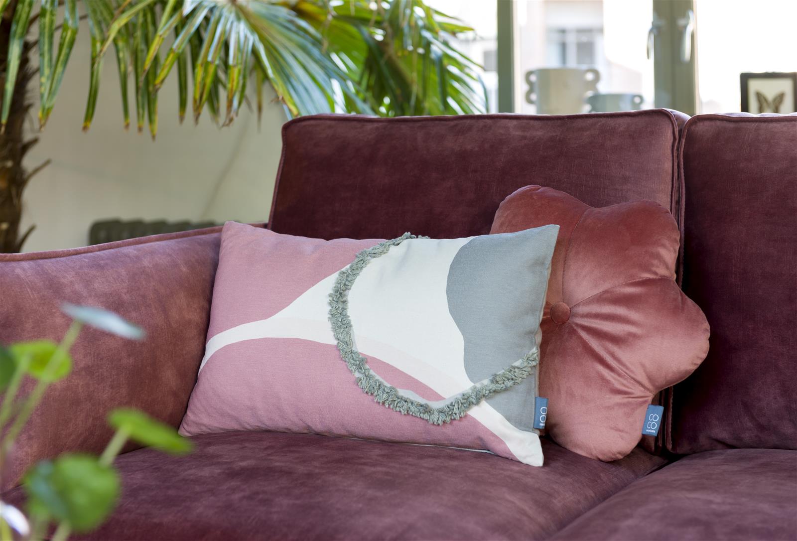 Ukrasni jastučić Geo i ukrasni jastučić Flora u različitim nijansama koje pristaju u roza interijer