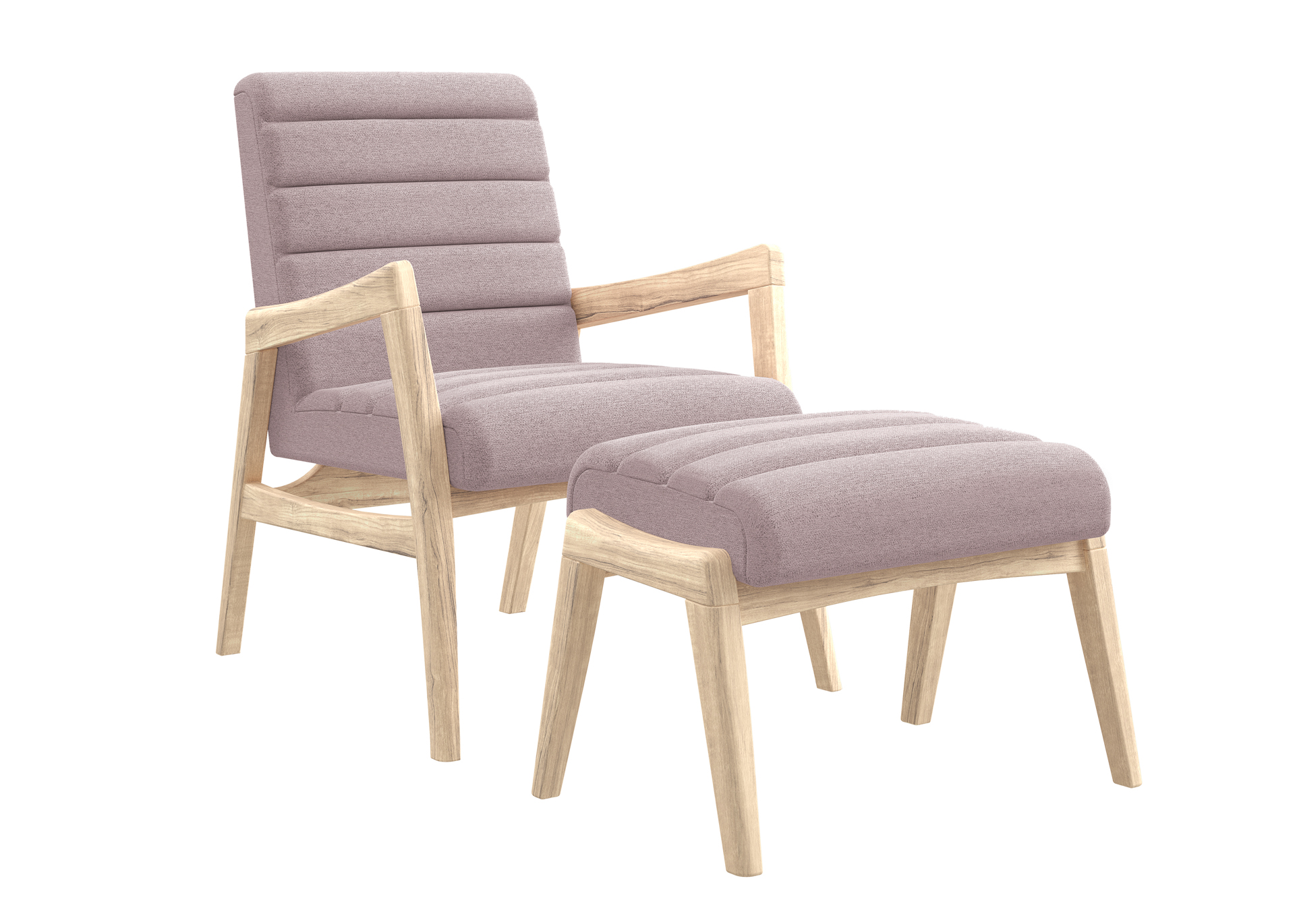 Fotelja Emerson s podnožnikom u kombinaciji izbijeljenog hrasta te roza tkanine Mercury 4025