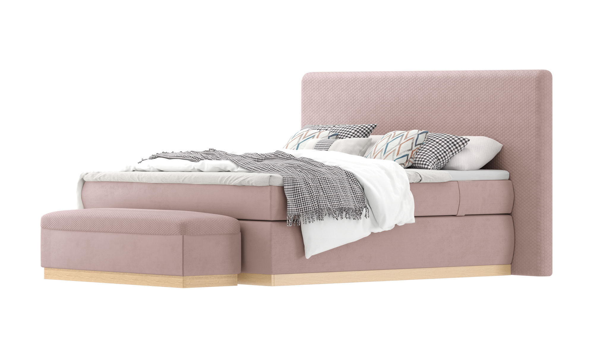 Box spring krevet s nadmadracem Erin i pripadajućom klupicom u roza tkanini Avelina 9180