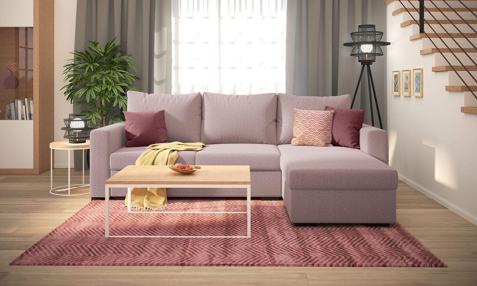 Kutna garnitura na razvlačenje Odesa u roza tkanini Mercury 4025