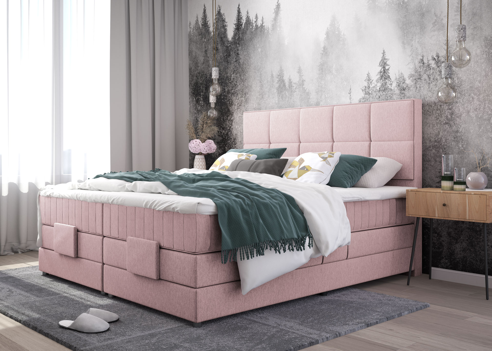 Box spring krevet Oton s električnim podizačima i madracem u roza tkanini Carlos 28