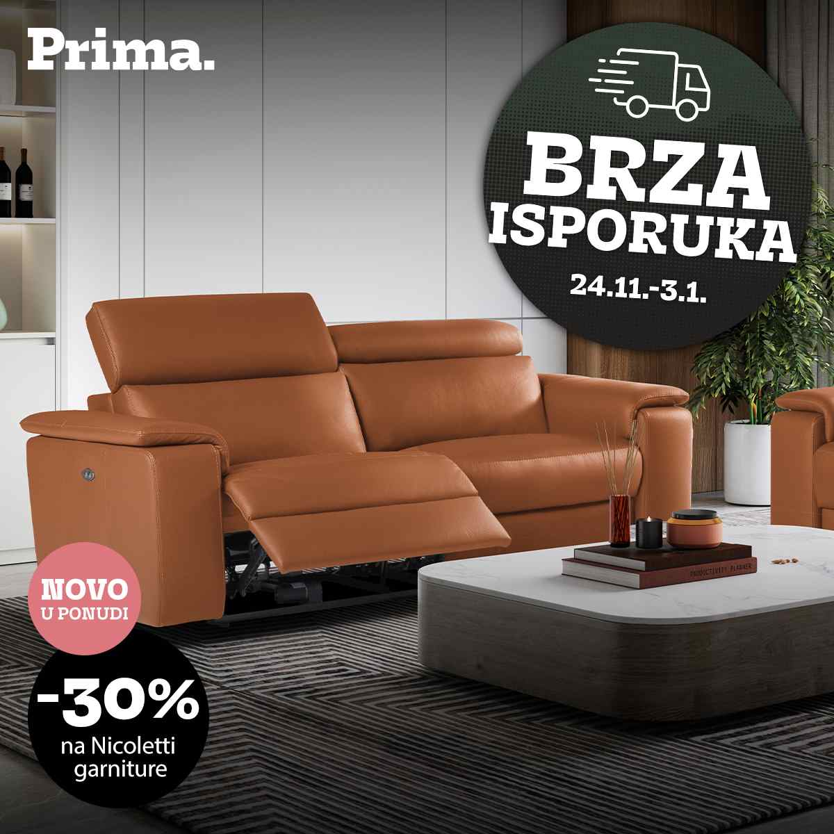 U Prima salonima već vlada blagdanska atmosfera, a i blagdanski popusti. Uvjerite se u moderan dizajn i kvalitetu namještaja te posjetite najbliži Prima salon gdje će vas dočekati prodajni savjetnici koji će vam pomoći pri odabiru namještaja i dekoracija po mjeri i stilu vašeg doma. Inspiraciju za uređenje doma možete pronaći u najnovijem letku te na Prima službenom Facebook, Instagram, TikTok i Pinterest profilu.