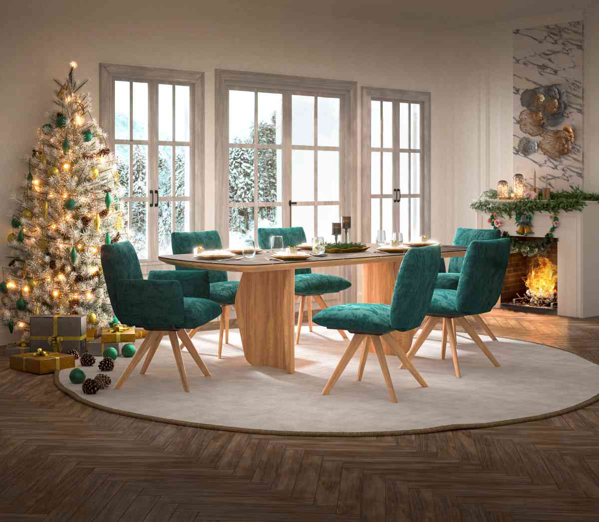 Osim blagovanja, otkrijte zabavu koju kriju zajedničke aktivnosti poput ukrašavanja božićnih kolača, slaganja kućice od medenjaka ili, pak, DIY izrade božićnih ukrasa. Blagovaonski stolovi poput modernog stola Pablo, dimenzija 76 x 160 x 90 cm, s pločom od drvnog dekora i čvrstim metalnim postoljem u crnoj, sivoj ili bijeloj boji u kombinaciji omogućuju cijeloj obitelji dovoljno prostora za stvaranje čarobnih trenutaka, dok jednako atraktivne stolice Vita sa sjedištem dostupnim u velikoj paleti boja sve božićne aktivnosti čine udobnim iskustvom, čak i ako potraju cijelo poslijepodne.