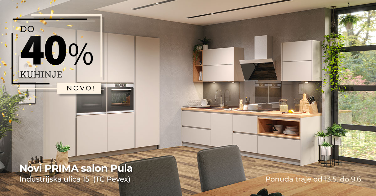 Novi PRIMA salon otvoren je u Puli i časti cijelu Hrvatsku dodatnim uštedama* od 13.5. do 9.6.! Novo ruho salona možete pogledati na adresi u Industrijska ulica 15 (Pevex).