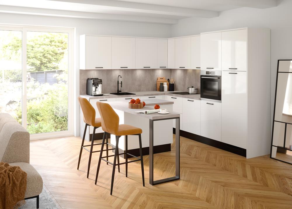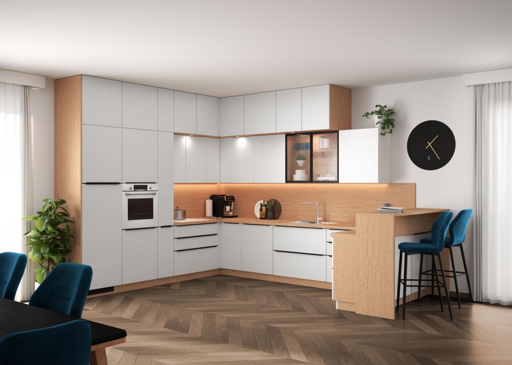 U suvremenom dizajnu kuhinja po mjeri bijela je idealna baza za kombiniranje: