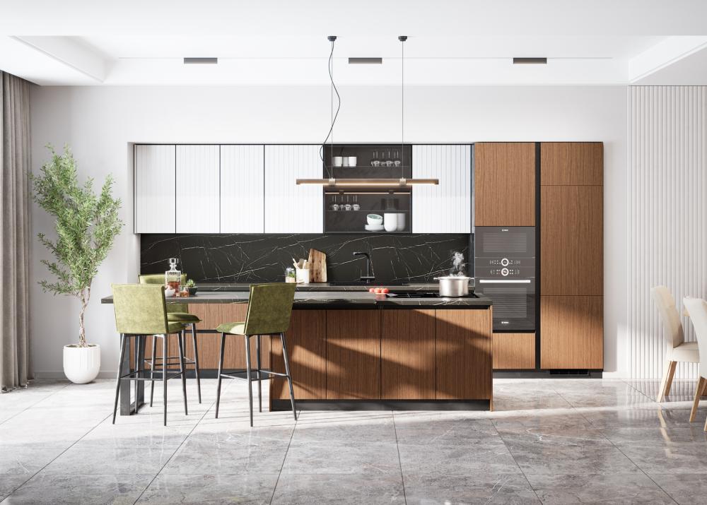 kao savršena podloga za kombiniranje s jačim bojama fronti, poput plave ili zelene, koje sve češće viđamo u modernim kuhinjama po mjeri