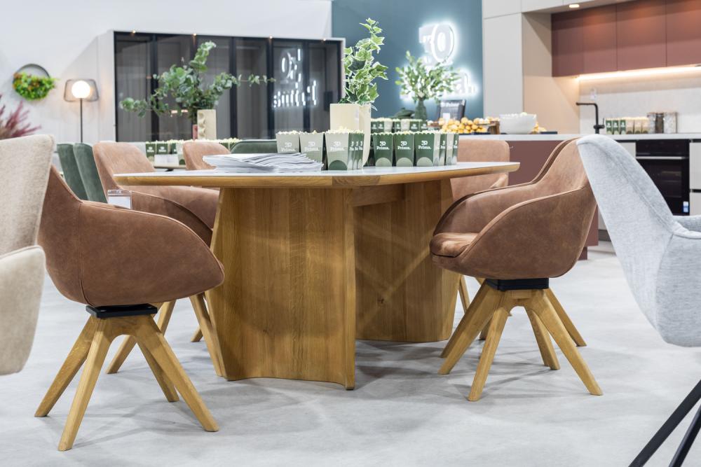 Poseban naglasak ove godine stavili smo na blagovaonice. Na štandu su izloženi stolovi različitih dimenzija, oblika i materijala – od toplog hrasta, preko bukve i stakla, do fine keramike. Ovalni stol Atakama u cimet nijansi, minimalistički Taro od smeđeg hrasta i skulpturalni Sahara s keramičkom pločom i hrastovim nogama izazvali su borbu mišljenja: koji je ljepši? Srećom, uz bogatu ponudu u Prima salonima – svatko može pronaći idealan stol za svoj dom.