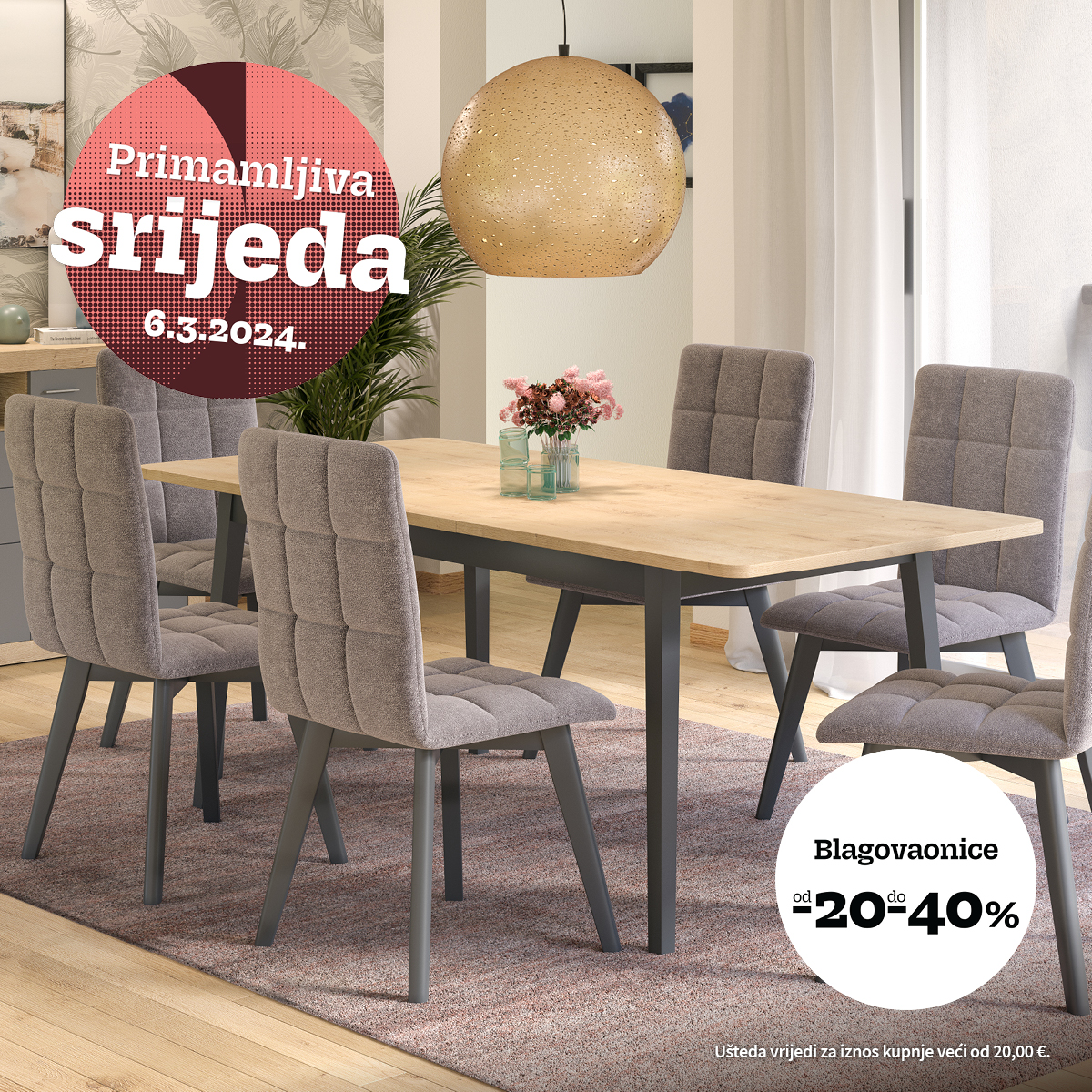 Posjetite nas 6. ožujka i iskoristite pogodnosti još jedne Primamljive srijede te opremite svoj dom širokom ponudom Prima namještaja.