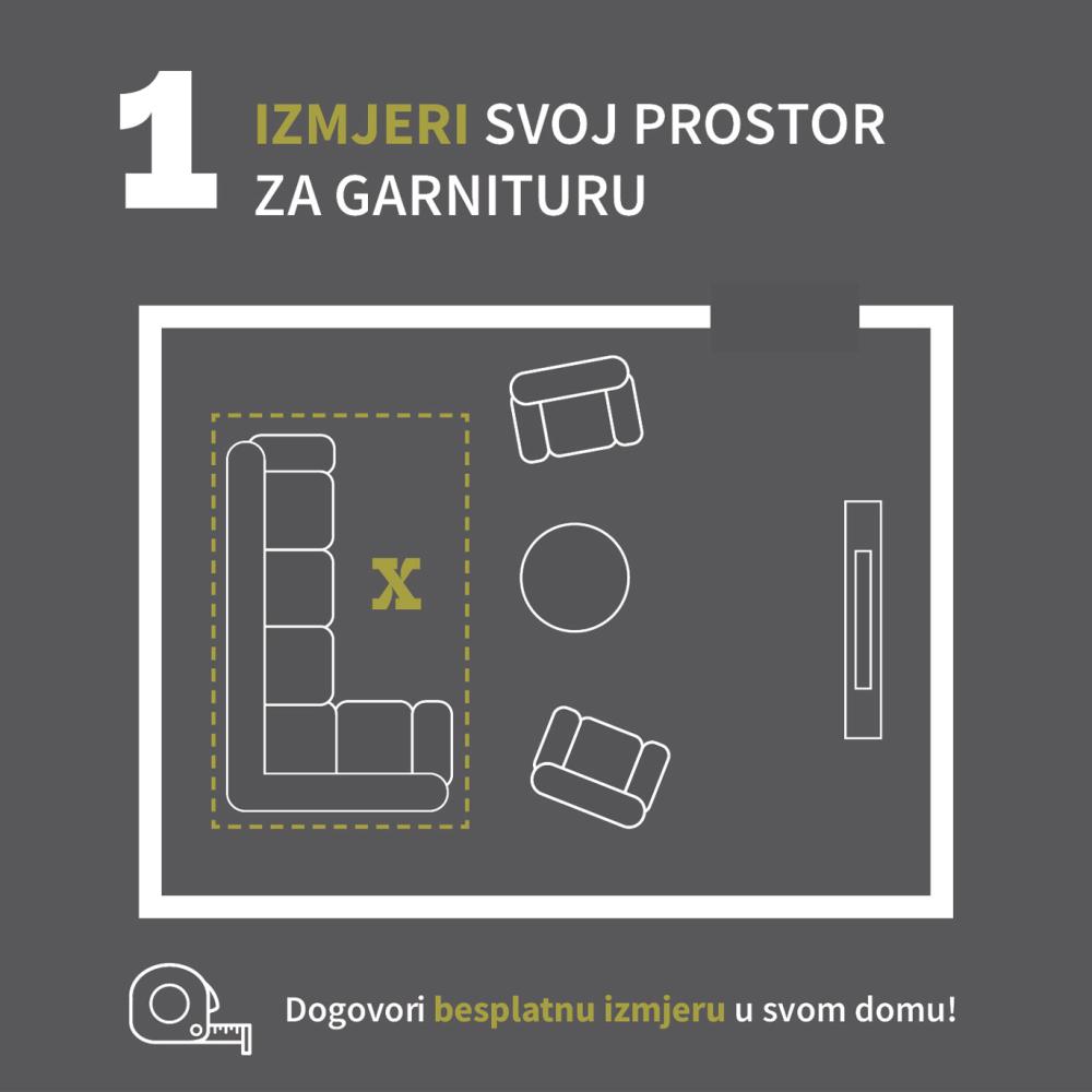 Mjerenje nije najuzbudljiviji dio, ali bez njega ništa. Zamislite da donesete garnituru, a ona je prevelika ili premala za vaš prostor – to svakako treba izbjeći. Zato uzmite metar u ruke i precizno izmjerite prostor. A kako bi sve bilo još jednostavnije, u Prima salonima možete dogovoriti besplatnu izmjeru. Stručnjaci će sve odraditi za vas, a vi možete mirno odmarati (ili skrolati webshopom u potrazi za idealnom garniturom).