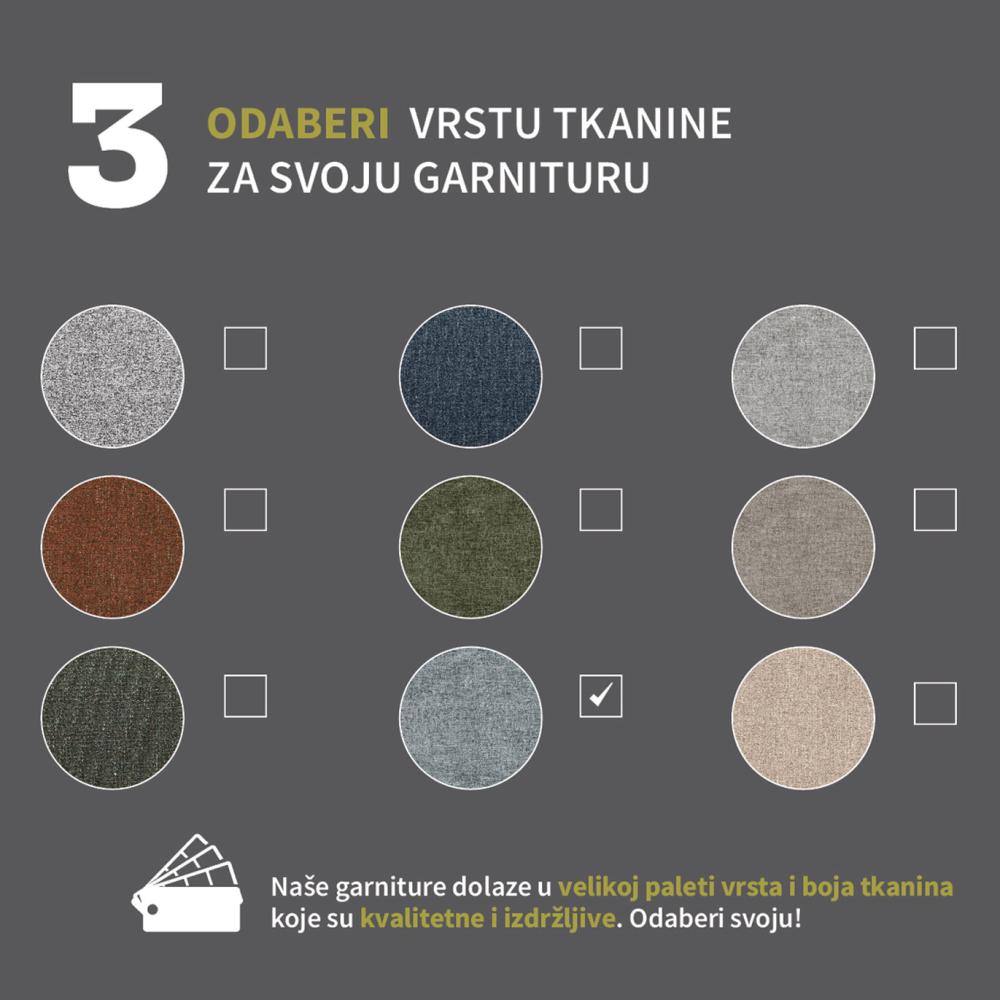 S modularnim garniturama ne birate samo njezin oblik, već i vrstu tkanine te njezinu boju. Želite mekanu, podatnu tkaninu? Ili nešto izdržljivo, savršeno za djecu i kućne ljubimce? Sve je moguće jer imamo veliki asortiman pomno biranih, kvalitetnih tkanina. Isto je i kada je u pitanju odabir boja. Ima ih toliko da će i najzahtjevniji pronaći svoju idealnu nijansu. Često na odabir imate i vrstu ili pak boju nogica za garnituru. Uz ovako širok izbor, vaša garnitura neće biti samo udobna, već i savršeno uklopljena u vaš stil.