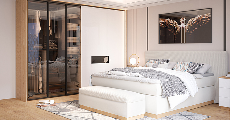 Adeo program obilježen je visokokvalitetnim materijalima i pametnim dizajnom s pažljivo odabranim praktičnim dodacima za organiziranu unutrašnjost. Fronte mogu biti u različitim bojama iverala, a odabirom staklenih fronti i ukrasnog okvira s integriranom rasvjetom, Adeo ormari postaju luksuzno rješenje za svaku spavaću sobu. Posjetite Prima salone kako biste doživjeli eleganciju ovog programa ormara, komoda, noćnih ormarića i toaletnih stolića.