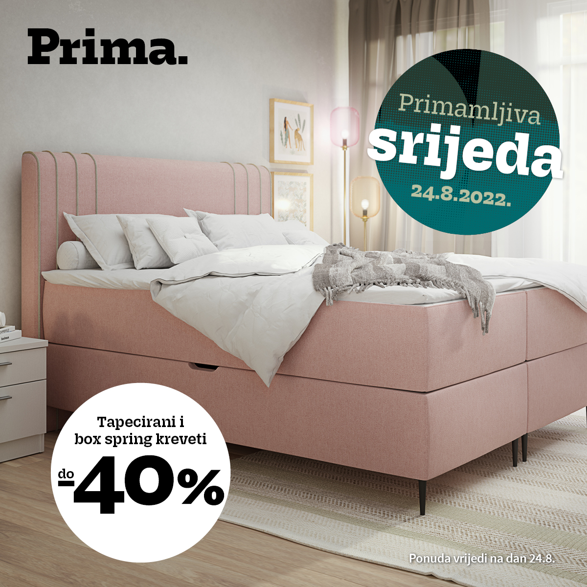 Opremite spavaću sobu raskošnim tapeciranim ili box spring krevetom za kvalitetan san u svim Prima salonima ili webshopu uz uštede do 40%.