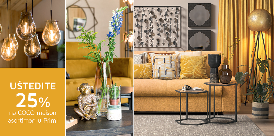 *Ušteda vrijedi za COCO maison artikle do 20.5.2020. u Prima salonima Jankomir, Kajzerica, Sesvete, Westgate, Velika Gorica, Bjelovar 2, Dubrovnik, Varaždin Lumini, Pula, Split, Benkovac, Rijeka, Osijek, Sinj, zadar, Šibenik. Uštede se ne zbrajaju i međusobno se isključuju, obračunavaju se na blagajni.