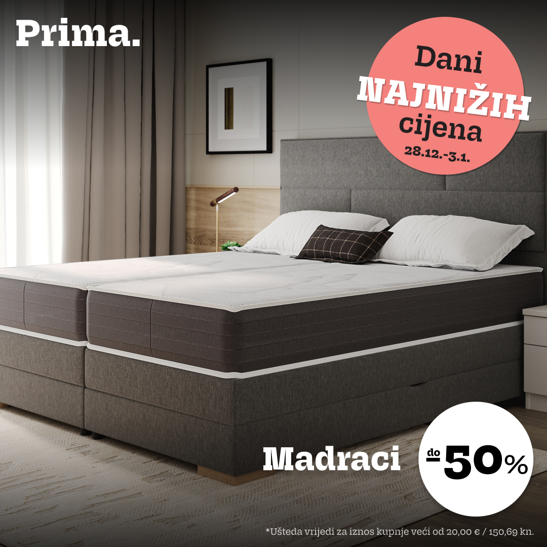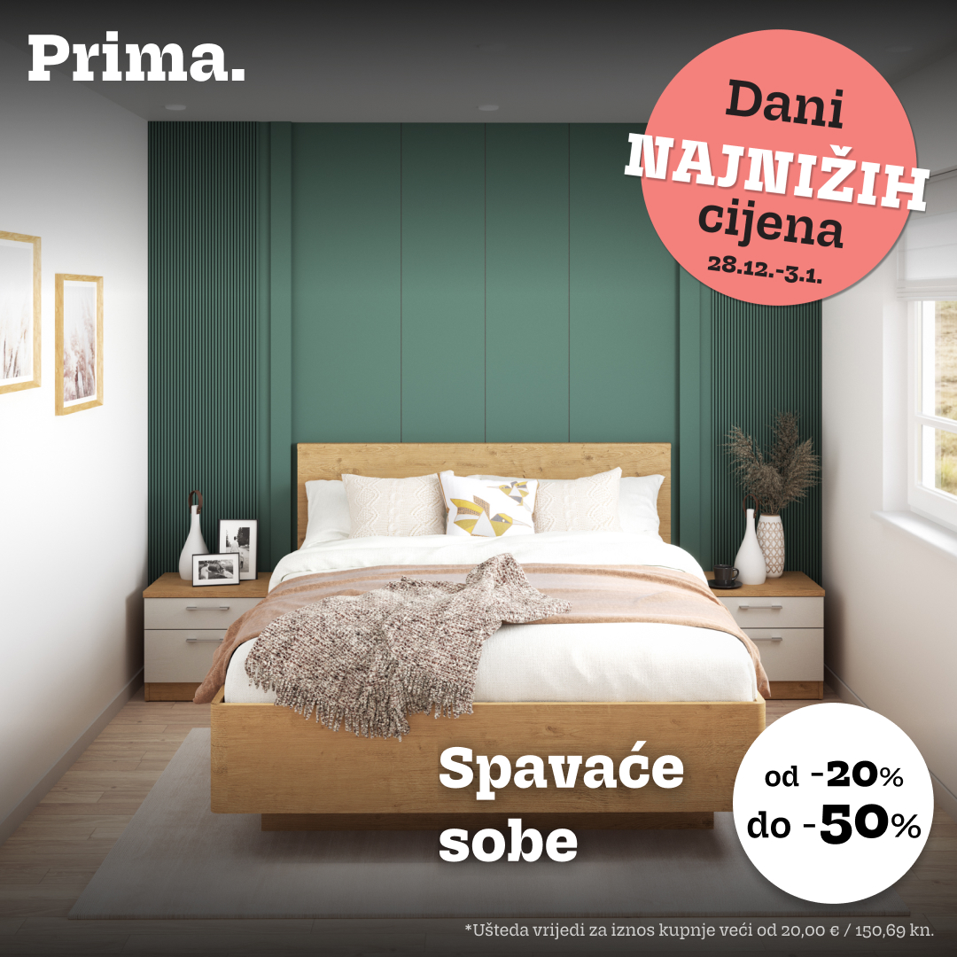 Posjetite Prima salone i webshop jer počinju Dani NAJNIŽIH cijena koji donose uštede* u periodu od 28. prosinca 2023. do 3. siječnja 2024.