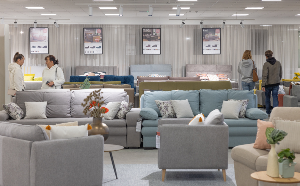 Naš salon, koji se renovirao zadnjih mjeseci, sada se proteže na čak 3650 kvadrata i uređen je u novom prodajnom konceptu "100% tvoje", koji čini kupovinu namještaja još većim užitkom.