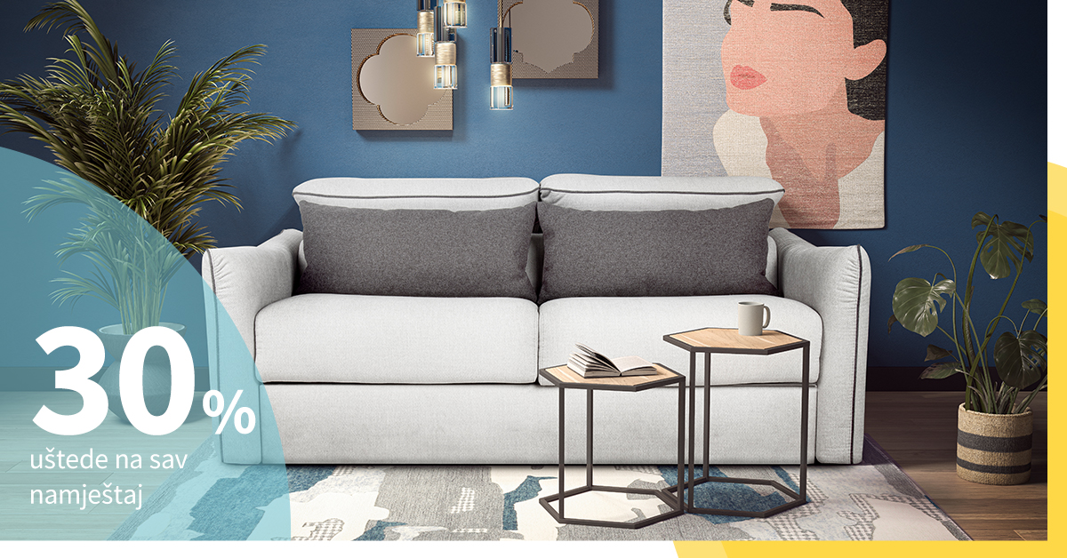 *Ušteda vrijedi od 1. do 6.10.2020. u svim PRIMA salonima i na webshopu. Ušteda od 40% na spavaće sobe, tapecirane i box spring krevete vrijedi u salonima i online, ne vrijedi za HIT artikle. Ušteda od „minimalno 30%“ ne vrijedi online i ne odnosi se na kupovinu peleta, korita, slavina i električnih aparata te dekorativnog asortimana COCO maison. Mogućnost plaćanja do 24 rate bez kamata neovisno o iznosu kupovine za kartična plaćanja za koje je, prema ugovorima s izdavateljima, omogućeno plaćanje do 24 rate. Informacije o mogućnosti plaćanja Vašom karticom možete dobiti na prodajnom mjestu. Uštede se ne zbrajaju i međusobno se isključuju.