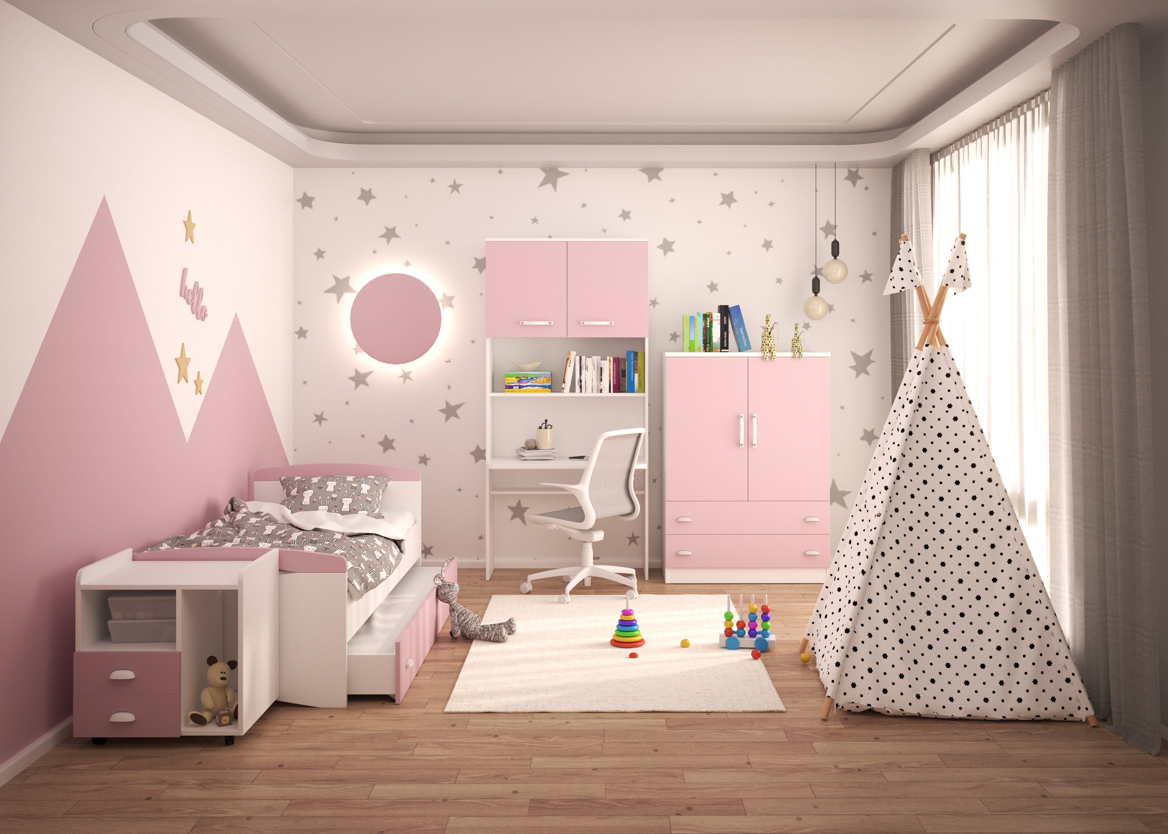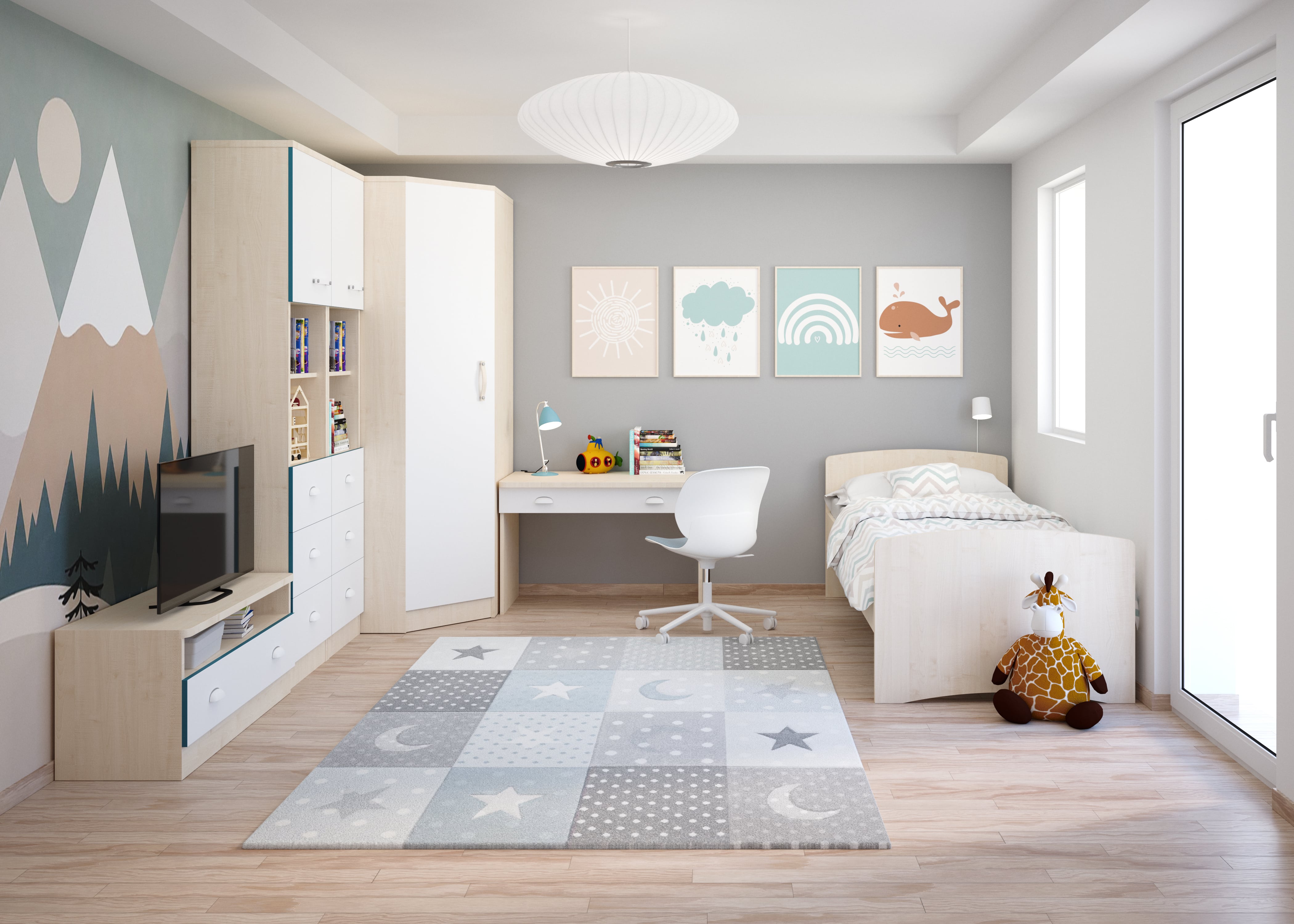 Programi dječjih i mladenačkih soba bogati su elementima u raznim kombinacijama boja, kojima se može maksimalno iskoristiti raspoloživ prostor. Ormari s kliznim ili zaokretnim vratima, mnoštvo elemenata s ladicama i policama te različiti modeli kreveta i radnih stolova pomažu u oblikovanju idealne sobe.