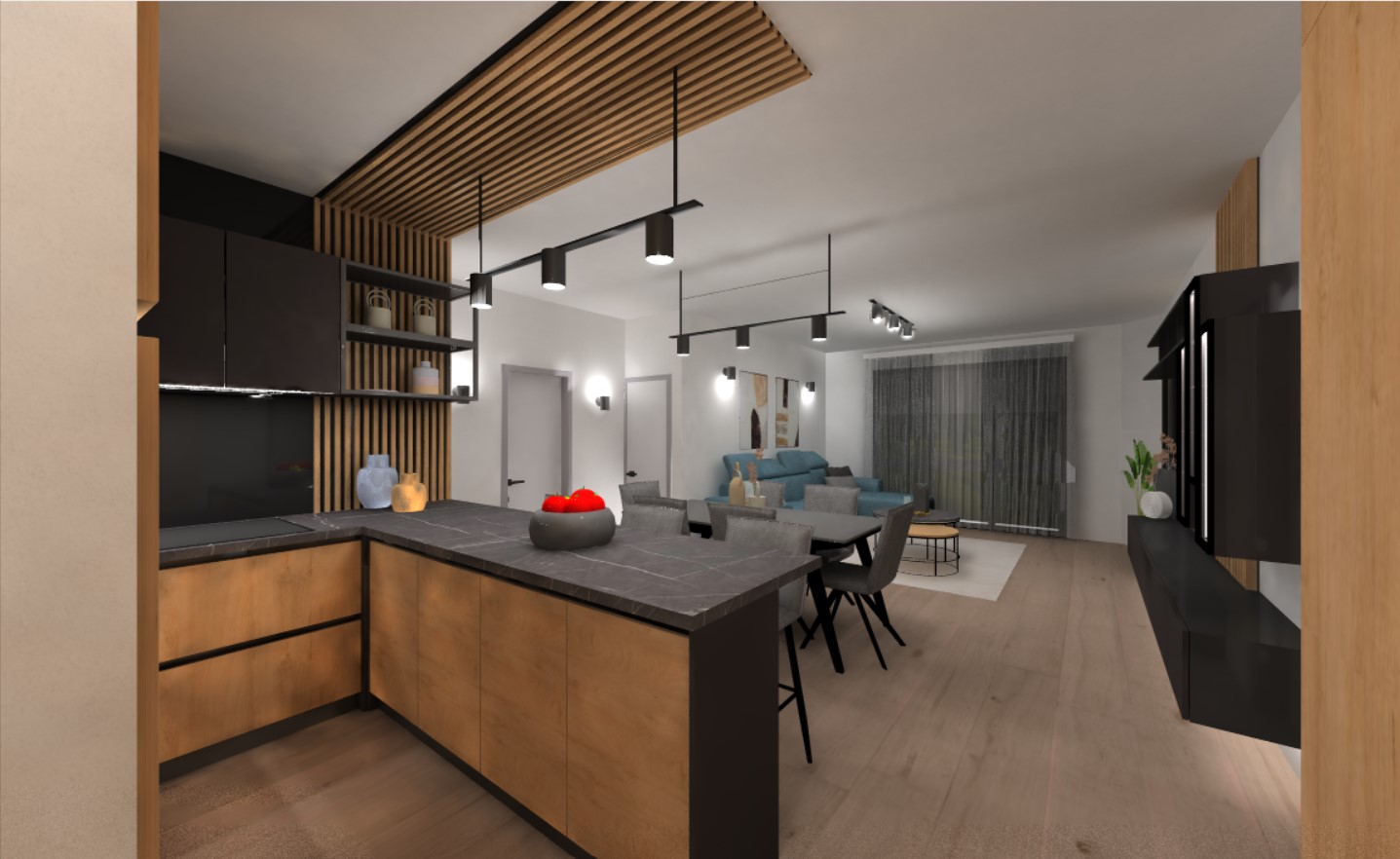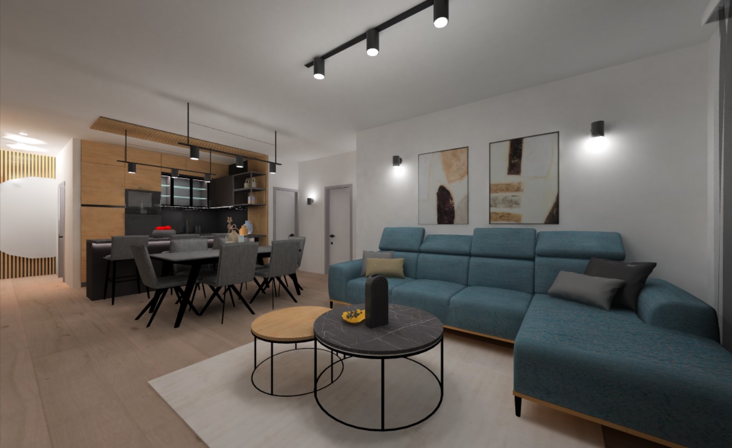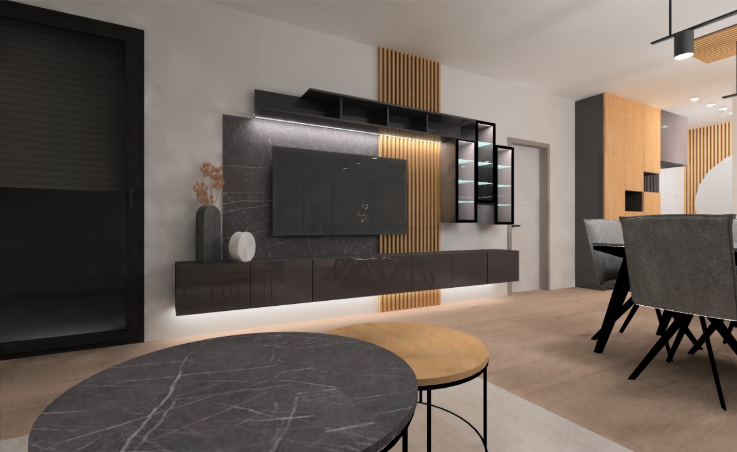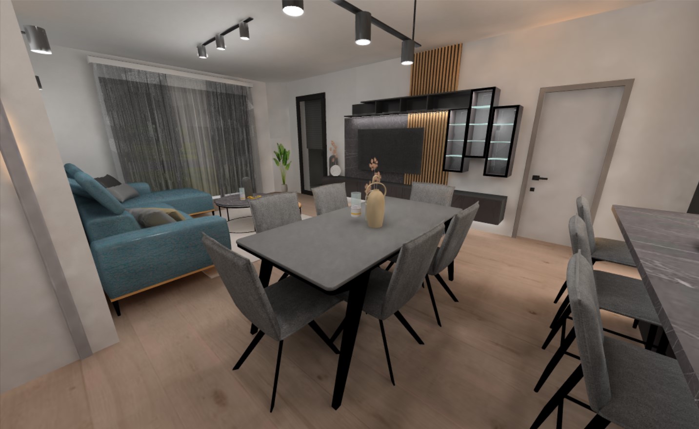 Realistično rješenje za ovaj moderni interijer Stephany je izradila u 3D CAD sustavu koji omogućuje detaljni 3D prikaz životnog prostora te prostorni plan namještaja i dekoracija.