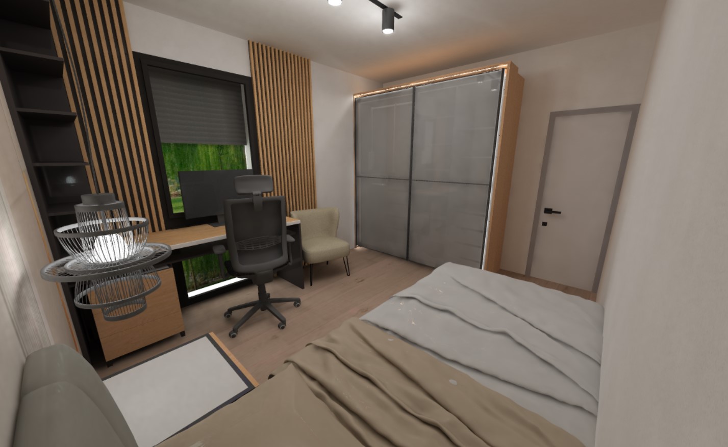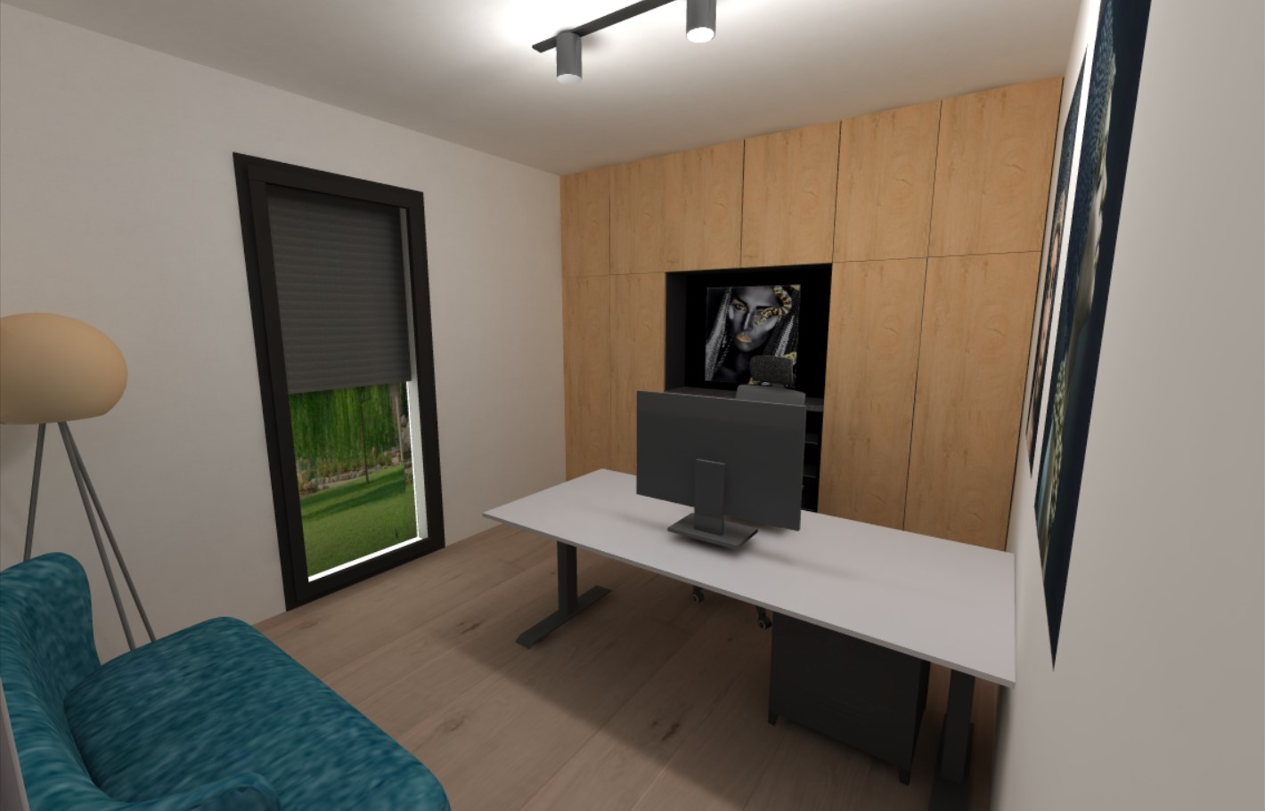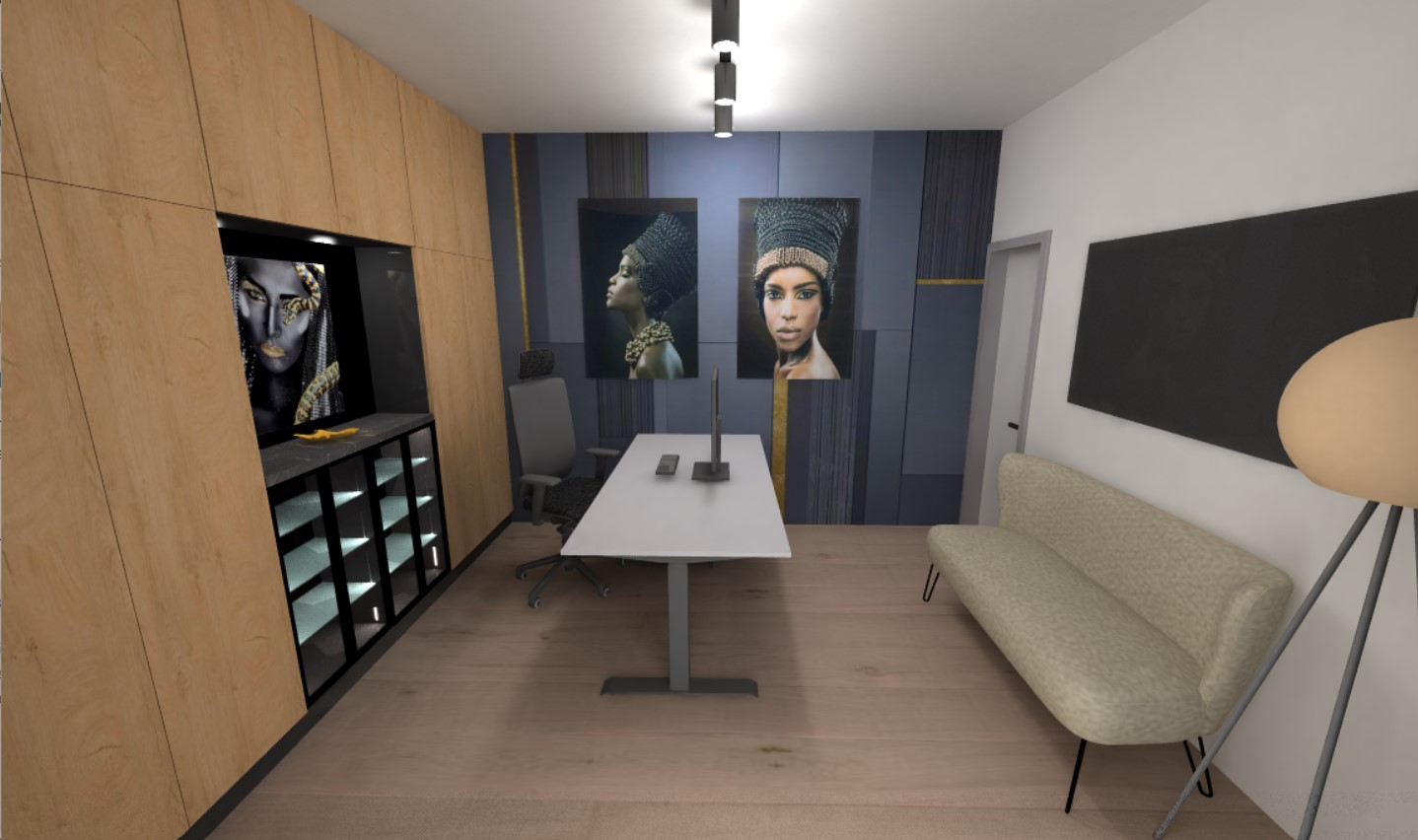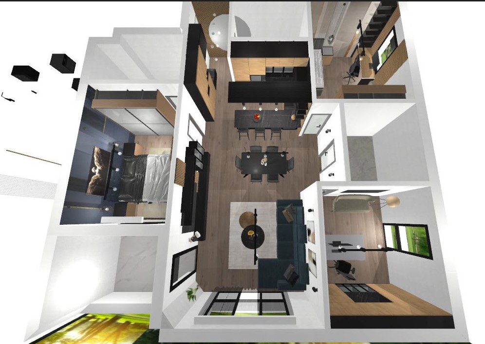 Realistično rješenje za ovaj moderni interijer Stephany je izradila u 3D CAD sustavu koji omogućuje detaljni 3D prikaz životnog prostora te prostorni plan namještaja i dekoracija.
