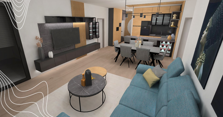 Kako bi budući stanari lakše vizualizirali svoj novi život i dom iz snova, naša Stephany Dervišagić, dizajnerica interijera u Prima grupi kreirala je realistično rješenje dizajna interijera za stan u objektu Jarun - Gredice 100 prema tlocrtu prostora od stotinjak kvadrata.