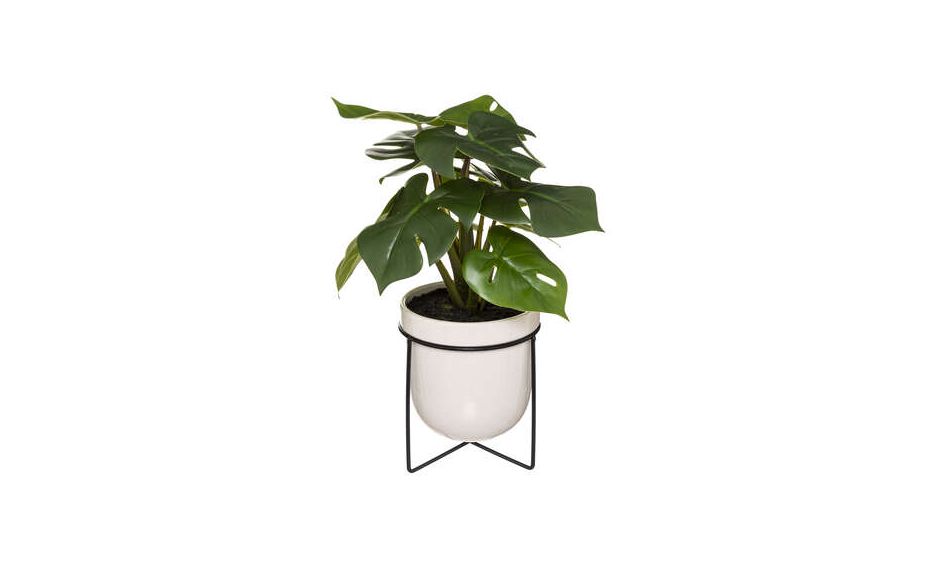 Umjetna biljka Monstera odlična je alternativa svježem cvijeću jer mu nije potrebna voda ili sunčeva svjetlost kako bi dugo vremena nadopunjavalo interijer. Izvrstan je ukras koji će ugoditi Vašim očima tijekom cijele godine. Za razliku od živih biljaka, ne zahtijeva zalijevanje, presađivanje niti odgovarajući sunčani položaj. Biljka je izrađena od visokokvalitetne plastike. Boja biljke i struktura savršeno odražavaju živahnu Monsteru.Tegla je izrađena od keramike, a nalazi se na metalnom postolju.