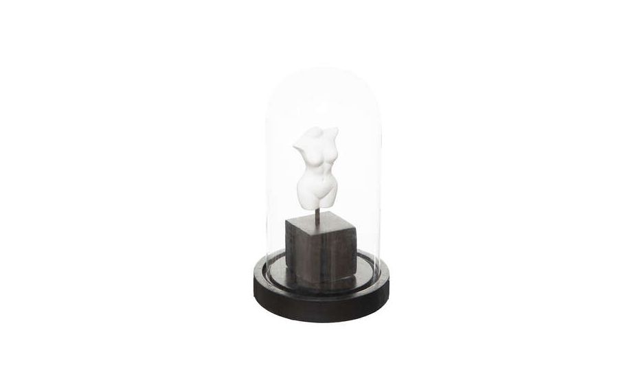 Profinjen i dizajniran ukras tijela pod zvonom unijet će suvremeni štih u vaš interijer. Stakleno zvono sadrži reprodukciju tijela, izrađenog od MDF-a i poliresina i pričvršćenog na metalnu šipku. Cilindrična drvena baza podupire ovaj set i daje mu dozu svježine. Dimenzija: 12x21cm.