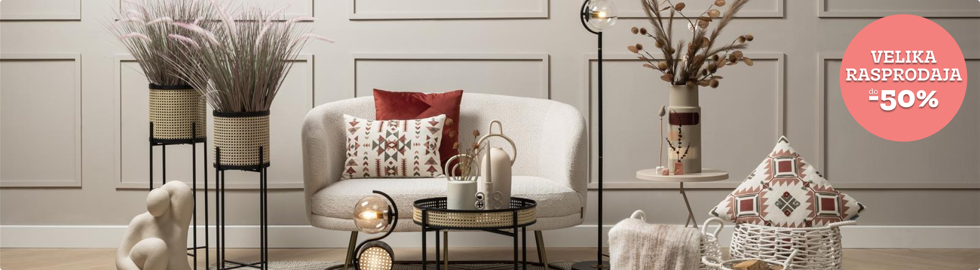 Otkrijte moderne i kvalitetne dekoracije za dnevni boravak, kuhinju, kupaonicu i spavaću sobu – U našoj ponudi čekaju vas dekoracije nizozemskog brenda COCO maison, francuskog brenda Atmosphera i originalni Prima proizvodi – sve za uređenje interijera na jednom mjestu i po pristupačnim cijenama.