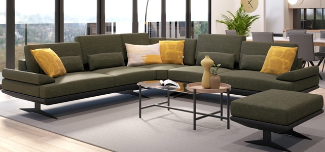 Kod modularnih garnitura sve se može promijeniti i prilagoditi vama. Birajte i kombinirajte! Prvo izmjerite prostor, odaberite elemente, odaberite tkaninu i boju pa kreirajte 3D vizualizaciju.
