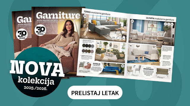 Uživajte u luksuznoj udobnosti po top cijeni – odaberite svoju savršenu Prima garnituru već danas i upotpunite je foteljom, regalom, klub stolićem i dekoracijama u svom stilu. Zavalite se i odmarajte bez brige!
