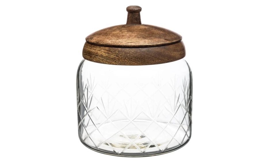 Staklena posuda omogućit će vam spremanje male količine namirnica poput keksa ili bombona, ali i pohranu brašna, žitarica, soli itd. U oblikovanom staklu s dijamantnim uzorcima, posuda je estetska i kompaktna, a njezin poklopac od drveta manga dat će prirodni štih kuhinji i zaštiti namirnice. Elegantna posuda, osim što je vrlo praktična, ona je i ukrasni element koji će u Vašu kuhinji unijeti dozu modernosti.