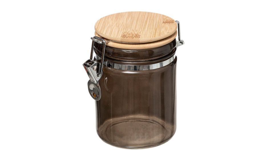 Crna doza Modern savršena je za spremanje hrane i organiziranje kuhinje i ormarića. Izrađena je od stakla i pogodna za kontakt s hranom. Ima poklopac od bambusa sa silikonskim prstenom koji zatvara posudu. Kapacitet doze je 0,75L.