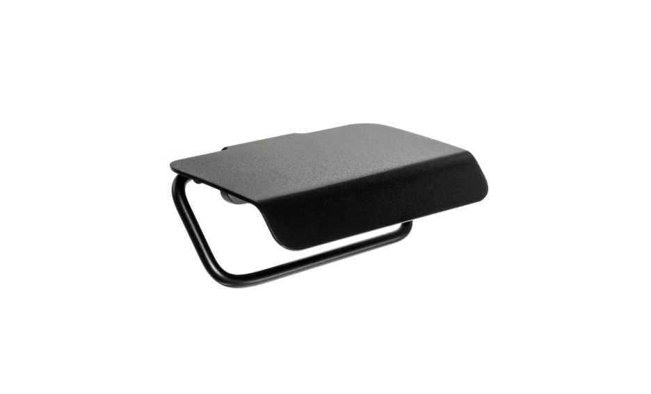 Držač toaletnog papira Onyx napravljen sa pokrovom koji osim što vizualno čini držač ugodnijim, ujedno i štiti papir od prašine, ali i od slučajnog odmotavanja role. Izrađen od aluminija koji je prelakiran mat crnim lakom.