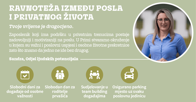 Primi vjerujemo da su zadovoljni zaposlenici temelj svakog uspjeha.