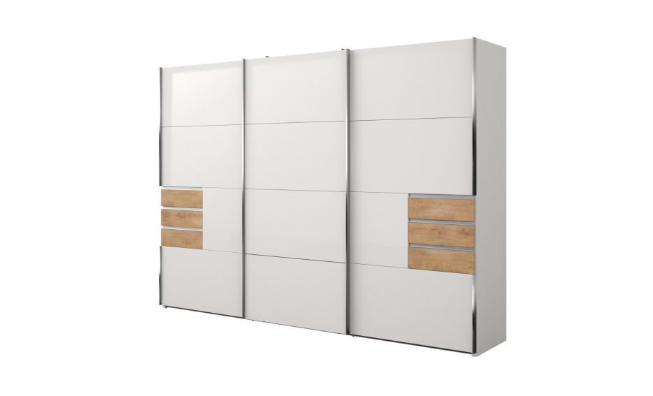 Inovativan dizajn kliznih vrata s vanjskim ladicama – posebnost i velika novost u dizajnu kliznih ormara su vanjske ladice, kojima možete jednostavno i neometano pristupiti, ovisno o dimenzijama modela ormara, birajte 3 ili 6 ladica s elegantnim Metabox sustavom i usporivačem za tiho zatvaranje.
