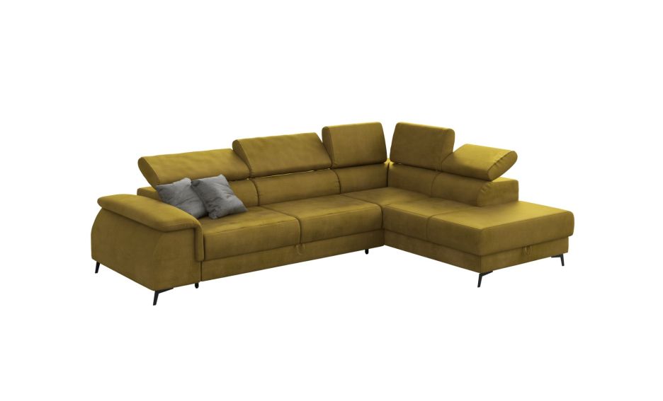 Baršunasta tkanina izuzetno nježna na dodir će vas očarati, a kutna garnitura Manila unijet će profinjenost u svaki prostor. Pomični glavonasloni pružaju dodatnu udobnost, dok je skriveni prostor za pohranu i mogućnost razvlačenja u ležaj čine savršenim spojem elegancije i praktičnosti.