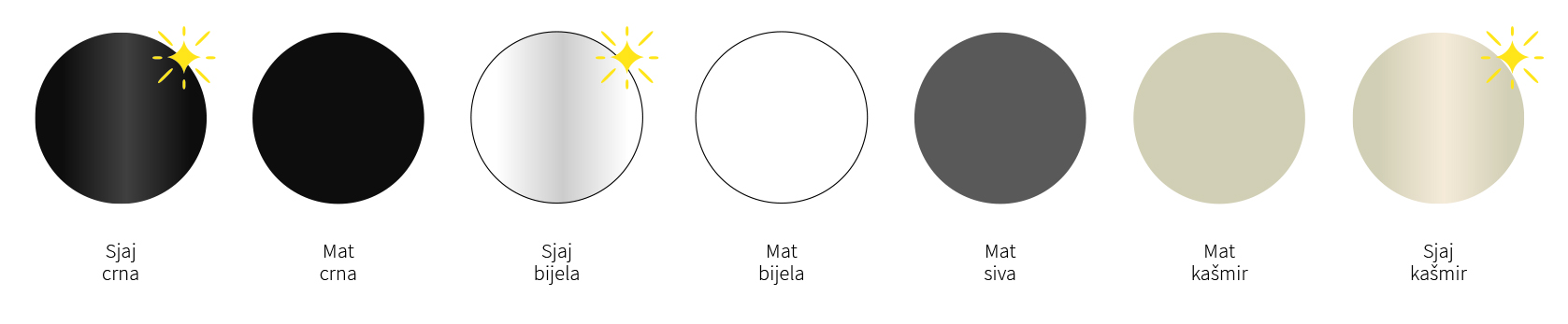 Akrilne fronte u mat ili sjaj izvedbi dostupne su u širokoj paleti boja, a mogu se prilagoditi svakom prostoru i željama. Uz velik broj fronta raznih boja i završne obrade, možete izabrati i ugrađenu rasvjetu, vrstu ručkica, kompakt ili klasične radne ploče.
