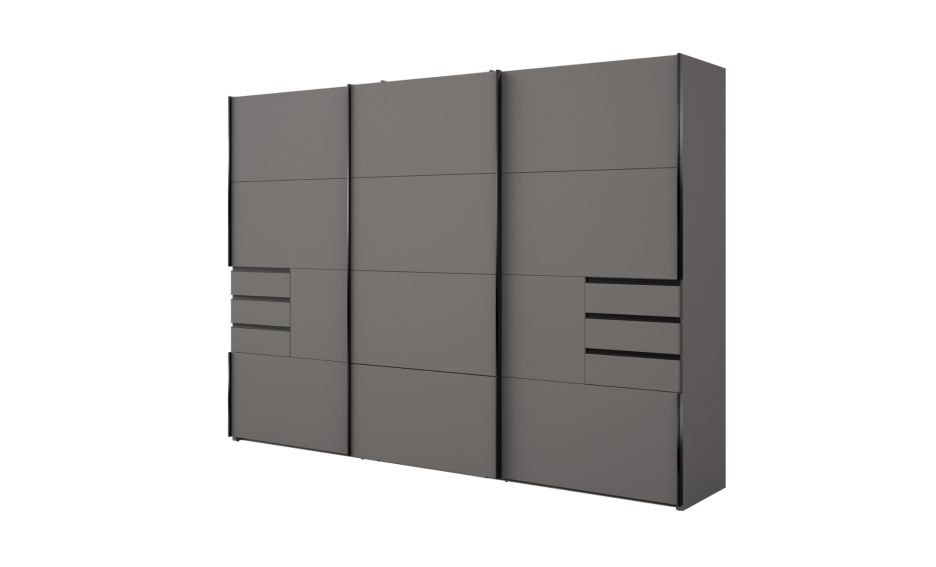 Inovativan dizajn kliznih vrata s vanjskim ladicama – posebnost i velika novost u dizajnu kliznih ormara su vanjske ladice, kojima možete jednostavno i neometano pristupiti, ovisno o dimenzijama modela ormara, birajte 3 ili 6 ladica s elegantnim Metabox sustavom i usporivačem za tiho zatvaranje.