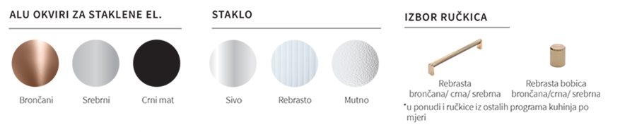 Izbor ručkica / stakla / alu okvira za staklene elemente
