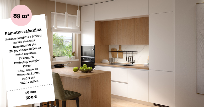 Uhvati popust dok je useljenje još daleko! Popust od 5% je tvoj ako planiraš na vrijeme, a plaćaš lagano karticom na 36 rata i to bez kamata, za minimalni iznos kupnje od 3.000,00 €.